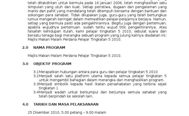 Kertas kerja majlis makan malam tahunan kolej ungku omar 2012/2013 tarikh 30 april 2013 tempat. Kertas kerja cadangan majlis makan malam. Kertas kerja cadangan majlis makan malam. Pertemuan dan permulaan sebuah ikatan persahabatan antara pelajar yang telah . Sekadar panduan kertas kerja bagi penganjuran majlis makan malam. Kertas kerja cadangan majlis makan. Pertemuan dan permulaan sebuah ikatan persahabatan antara pelajar yang.